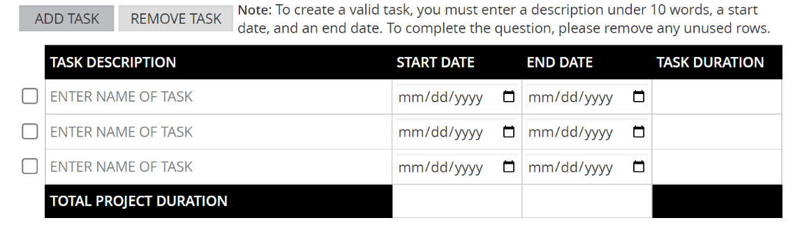 Describe your expected timeline and milestones for your proposed project. For each task, please provide a brief description, a start date and an end date. As part of your description, explain the milestones that you intend to measure and any key activities critical to reaching those milestones to know if you are successful or on track to be successful.